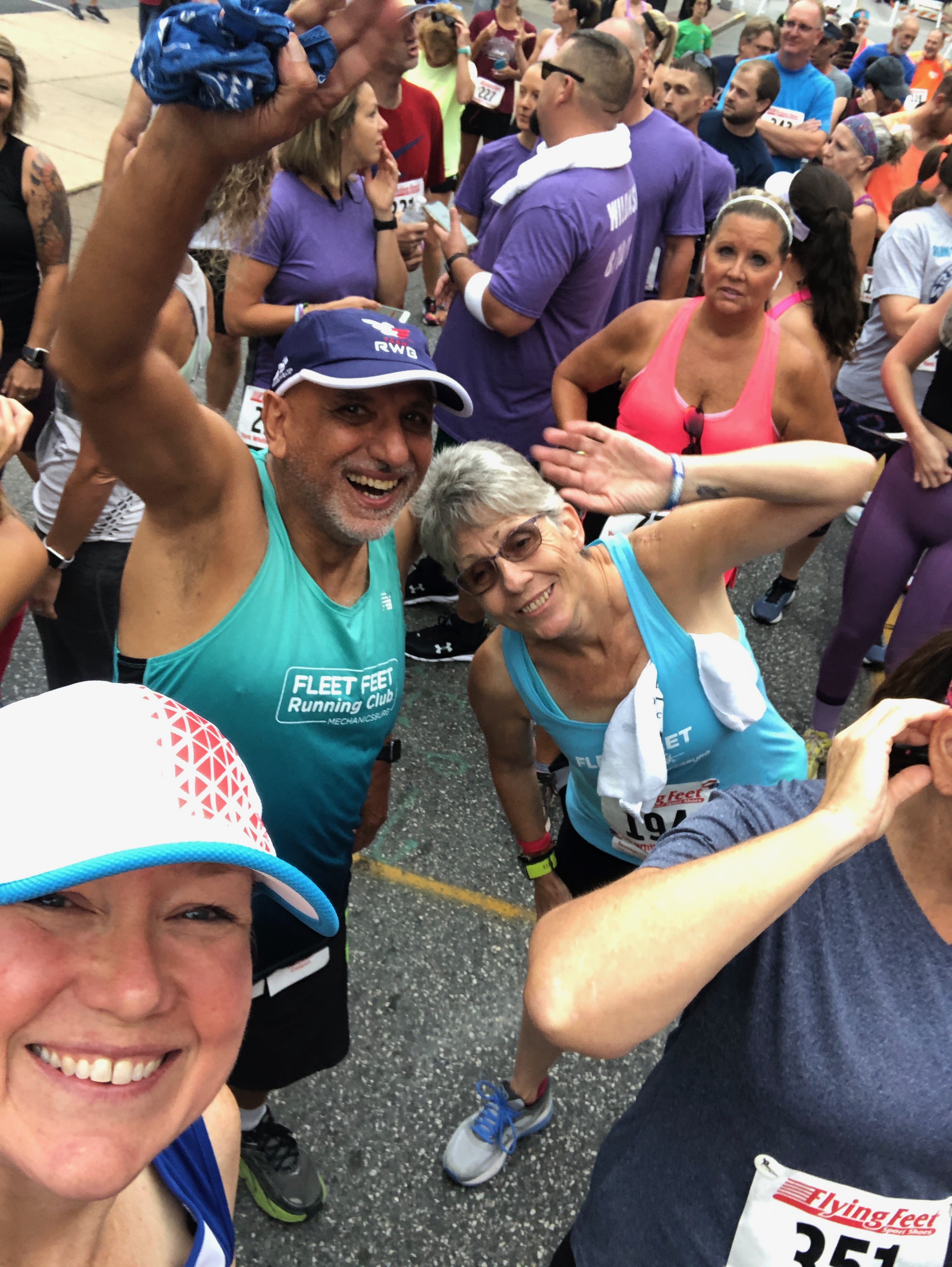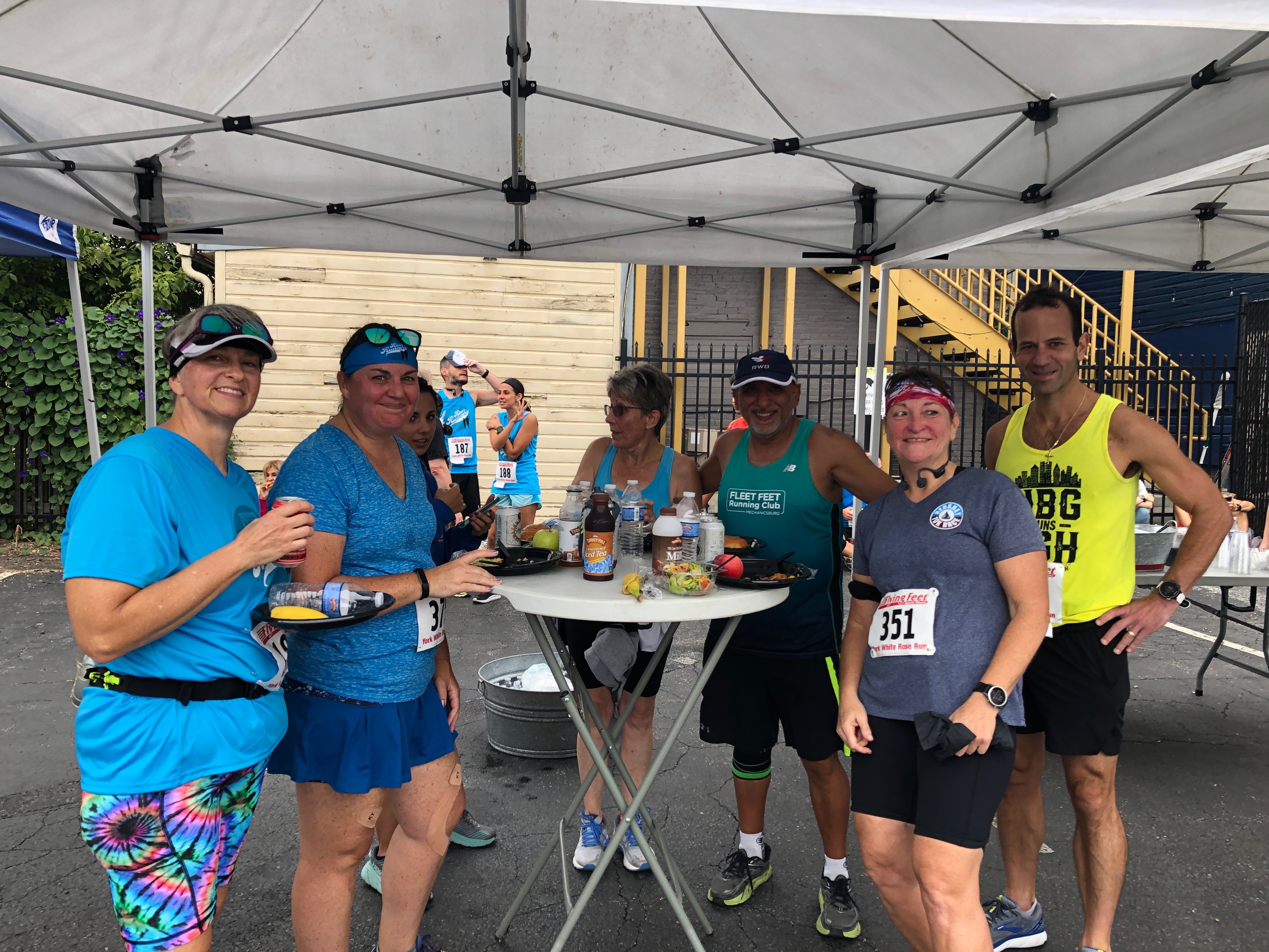 In addition to knowing the race organizers, Karen Mitchell and her husband Clay Shaw (who was the long-time race director), I knew numerous runners participating–which always makes a race even more fun. In fact, our Harrisburg area running group, River Runners, won the team competition by bringing the largest number of runners–close to 40–which won us the distiction of having a team tent for the after-race party!