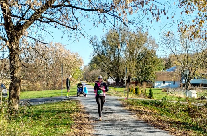 The 5-miler and 5K started together, then diverged on different courses after about half a mile. But “the challenge” course combined the 5-miler plus the 5K course for a total of 8.1 miles. It was a beautiful course, following country roads in Lebanon and Lancaster Counties (including cows who ran along their fencelines with us!) plus a nearby rail trail (Lebanon Valley Rail Trail and Conewago Recreation Trail).