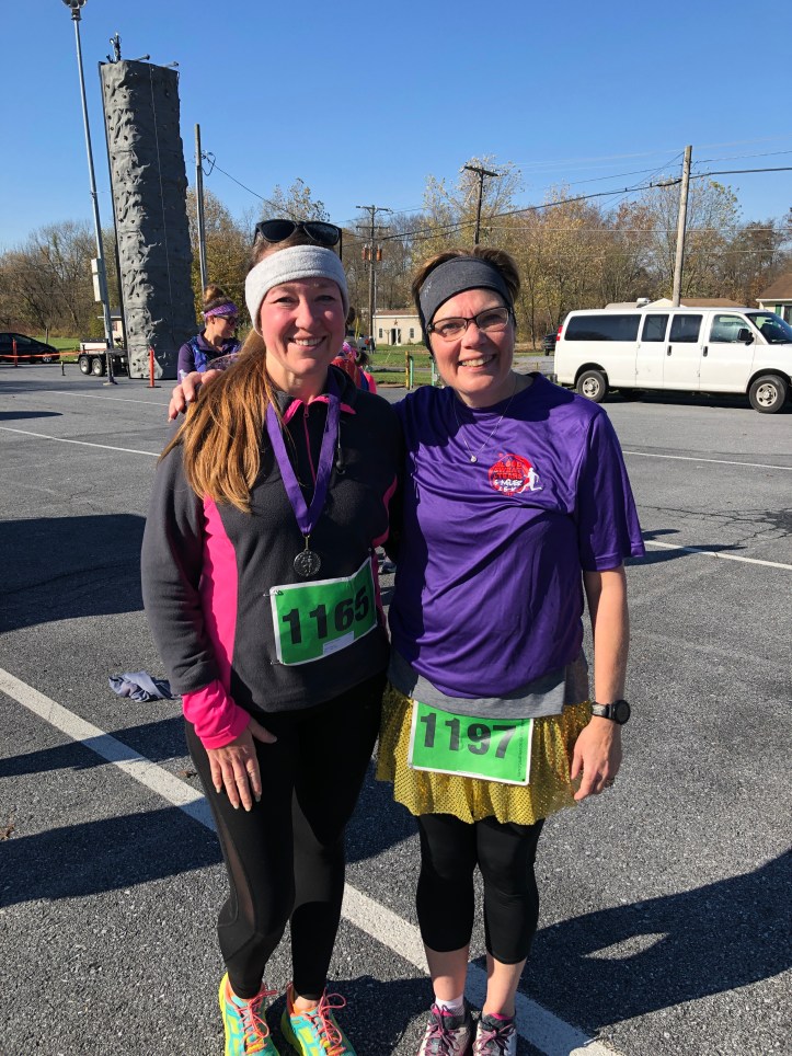 My friend Linda has a special connection to today’s race: This weekend, local runner Mike McCauley is in the process of running 210 miles, from Penn State Hershey Medical Center to Children’s Hospital of Philadelphia, and back again. It retraces the journey of his son’s cancer treatments, and he’s also raising money for the Emily Whitehead Foundation as well as the Four Diamonds Fund. Linda is managing a wildly successful social media campaign providing support to Mike as well as fundraising. Check it out, here! She took a video of us cheering for Mike at our race start. Lots of great charity races going on this weekend!