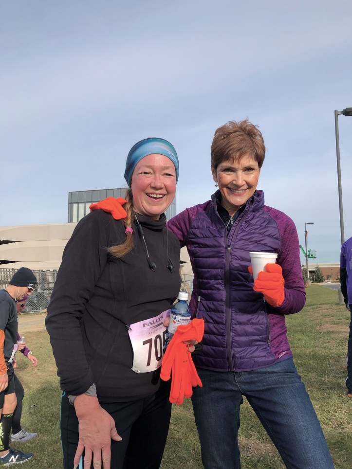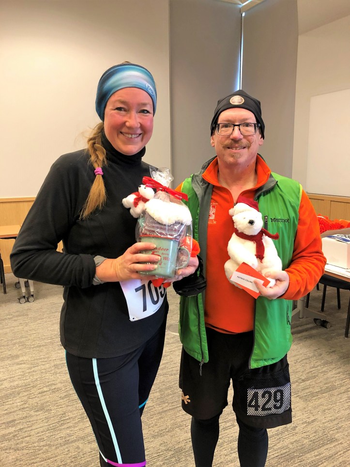 Running this race just two days after the turkey trot, and not running “full out” in either race, combined with some hills on today’s trail, I surprised myself with a slightly faster time than expected. There were some super-talented friends in my age group, so I was happy to place 6th out of 21. The top 5 women are all amazing. I was also surprised to be one of the lucky 30 door prize winners. And, everyone who participated received gloves with the cute little cocoa bean race mascot.