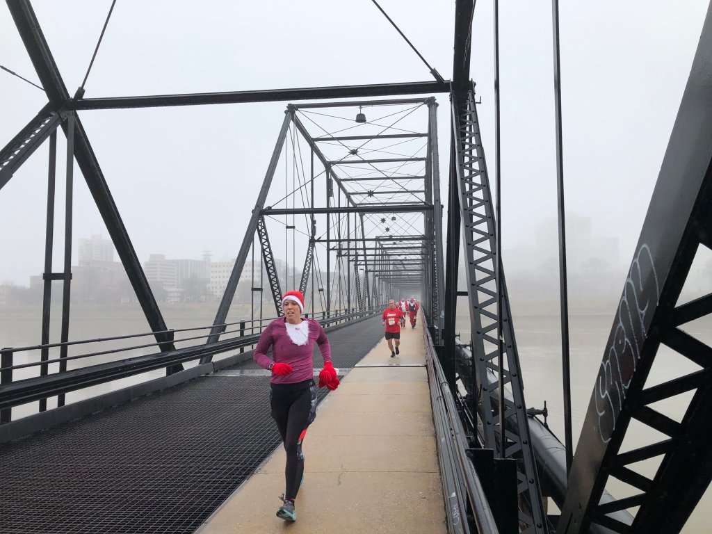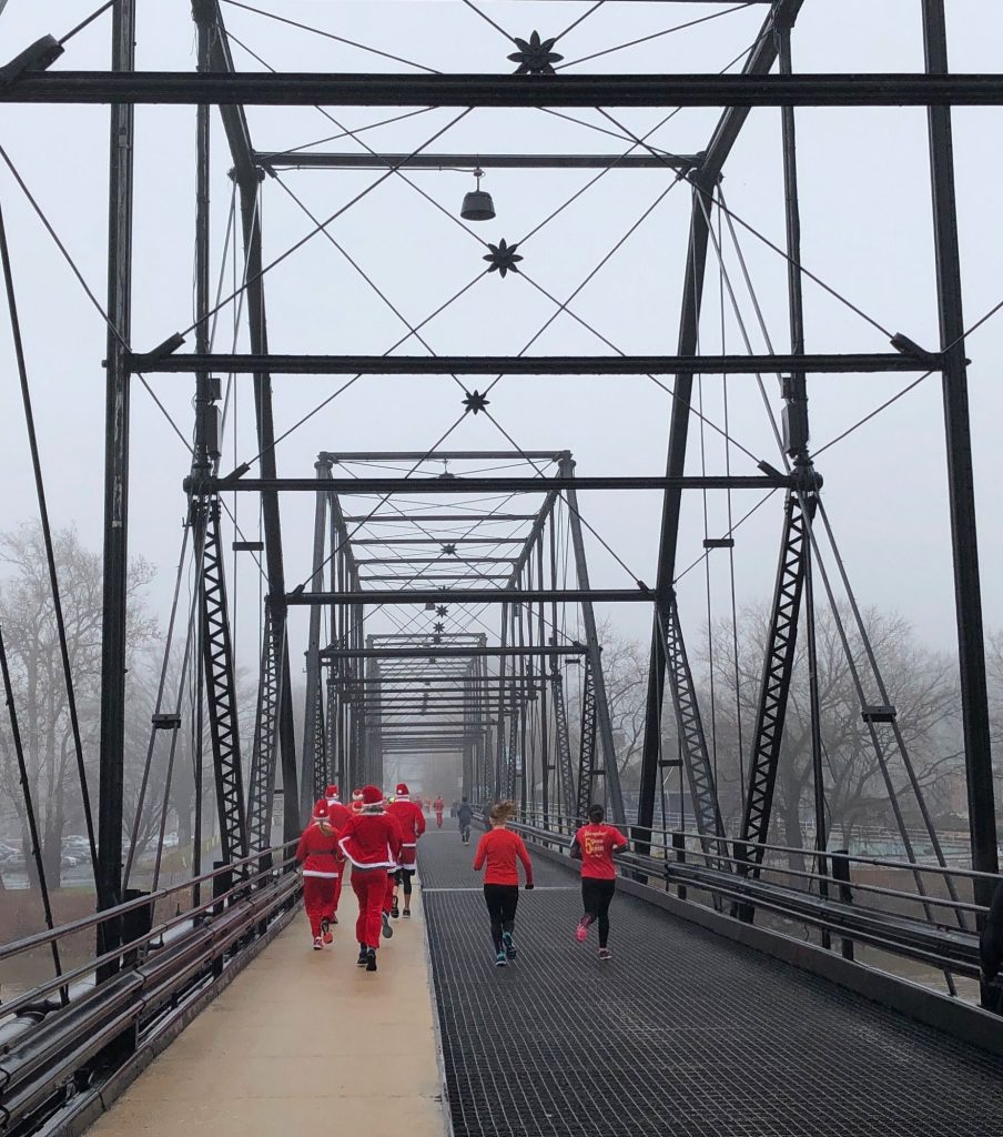 Fun fact: This bridge bounces slightly when there are lots of runners on it. Maybe even more so when they’re all Santas.