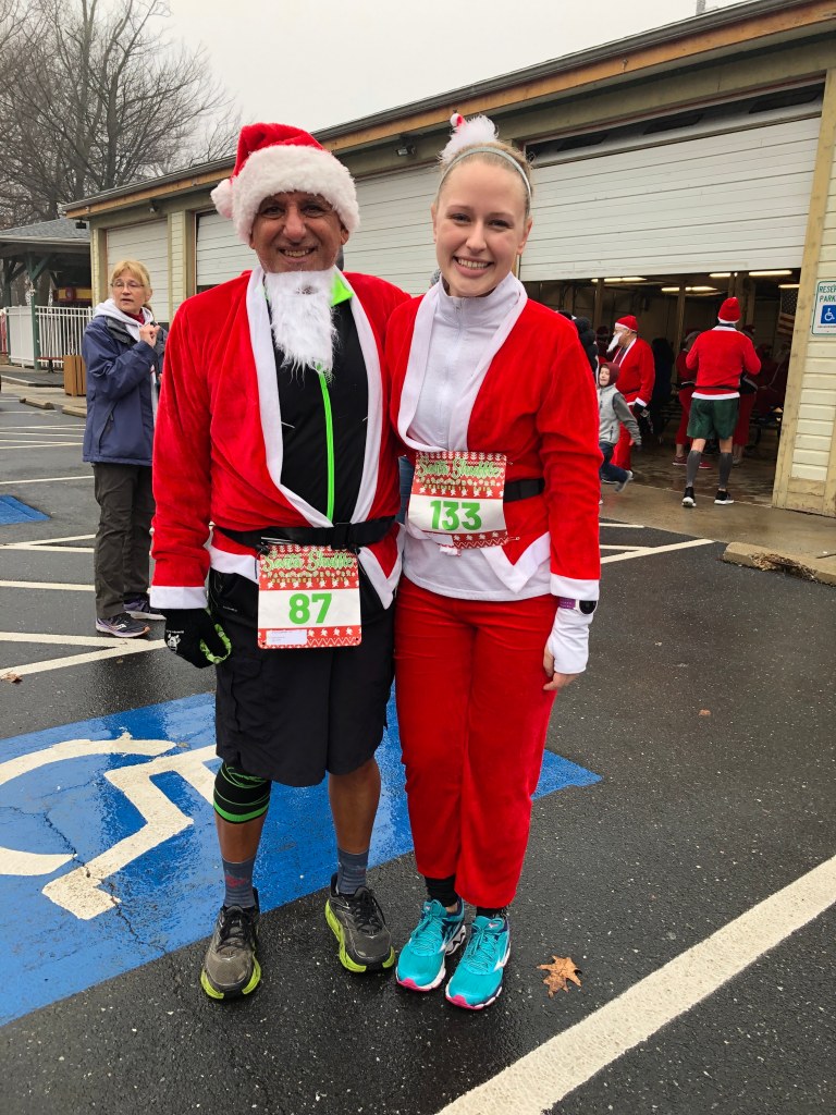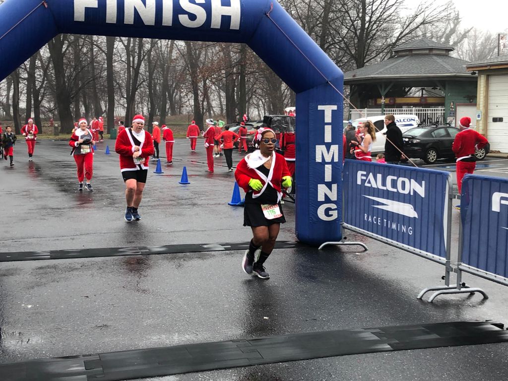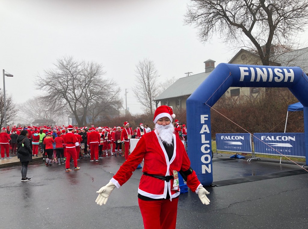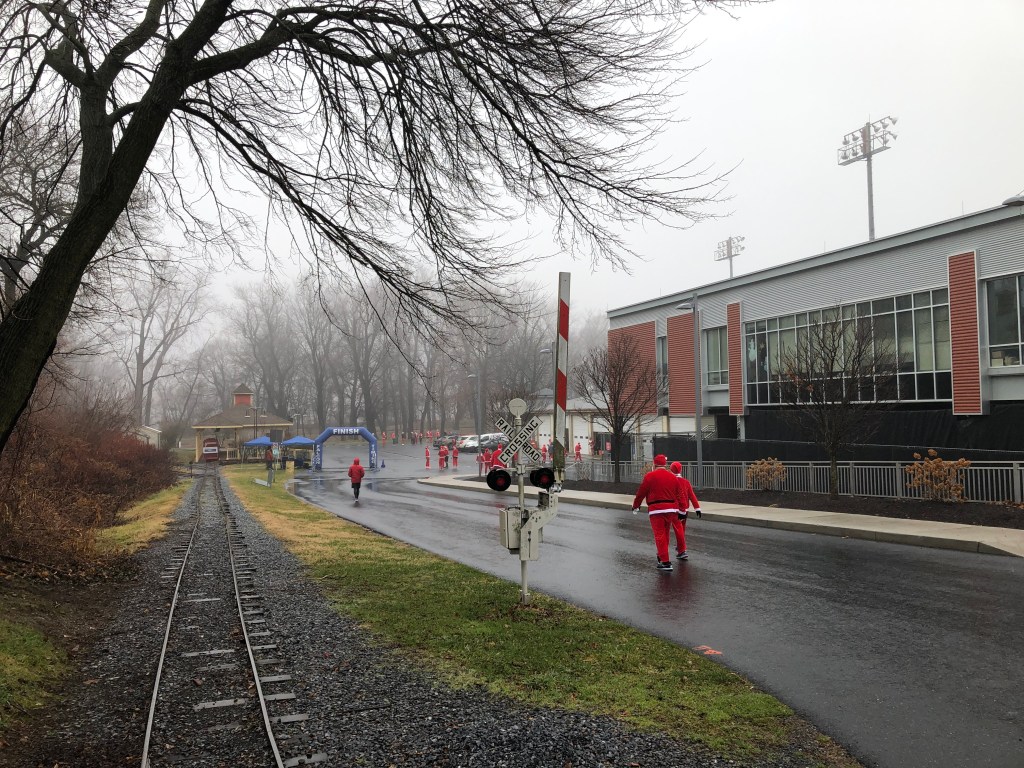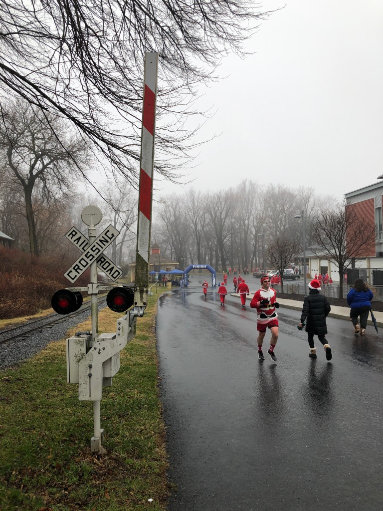 The Cause: This first-ever race (Dec. 14, 2019) was sponsored by my favorite local running store, Fleet Feet Mechanicsburg. And it’s much more than a great store. The Fleet Feet Running Club has taught me so much over the past several years and introduced me to some of the best running friends I’d ever hope to meet. Owners Shelby and Fred Joslyn are incredibly kind and talented; knowledgeable about all things running. They help set a friendly, welcoming tone for a thriving running community in the greater Harrisburg, PA area. They support existing Central PA races, and they are slowly adding and growing their own Fleet Feet Mechanicsburg races within central PA’s running calendar. Their Christmas gift to local runners like me? The chance to laugh and run with friends while dressed like Santa along the Susquehanna River on a foggy, drizzly Saturday morning. The memories will linger for a long time–just like the red lint on my black tights. 🙂