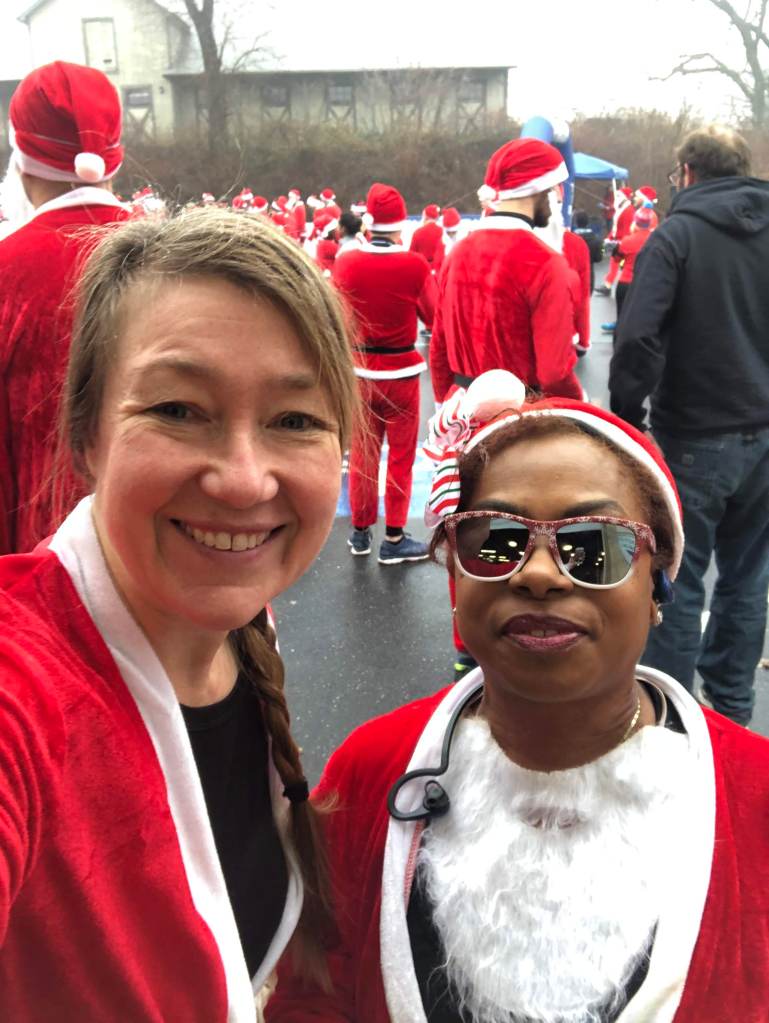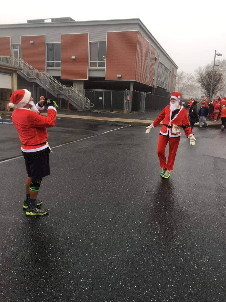 3. Santa suits are not moisture wicking. In fact, whether there is weather, or sweat—either way, it’s not good. About 400 of us put these suits to the ultimate test during light rain. Lesson: Santa suits ABSORB moisture and may become heavier, mid-run. Lots of layers are not needed. Unless temps are in the single digits.