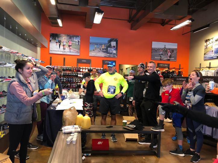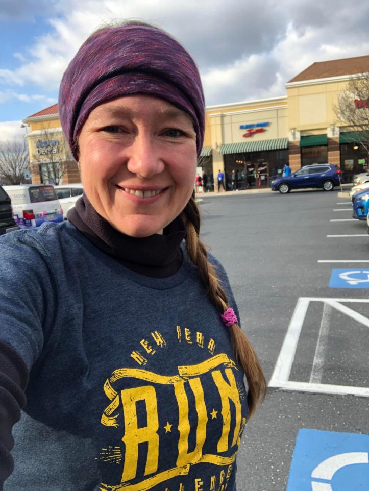 Arriving at Fleet Feet Mechanicsburg with my New Year Run Challenge shirt, 9:30 a.m.