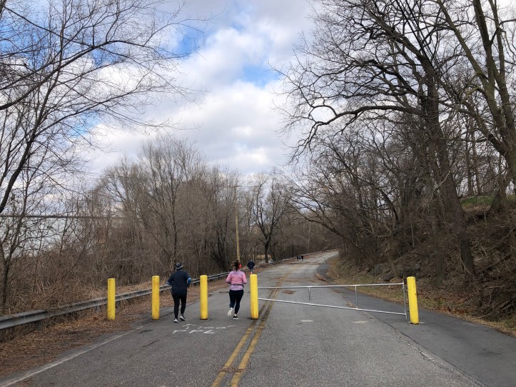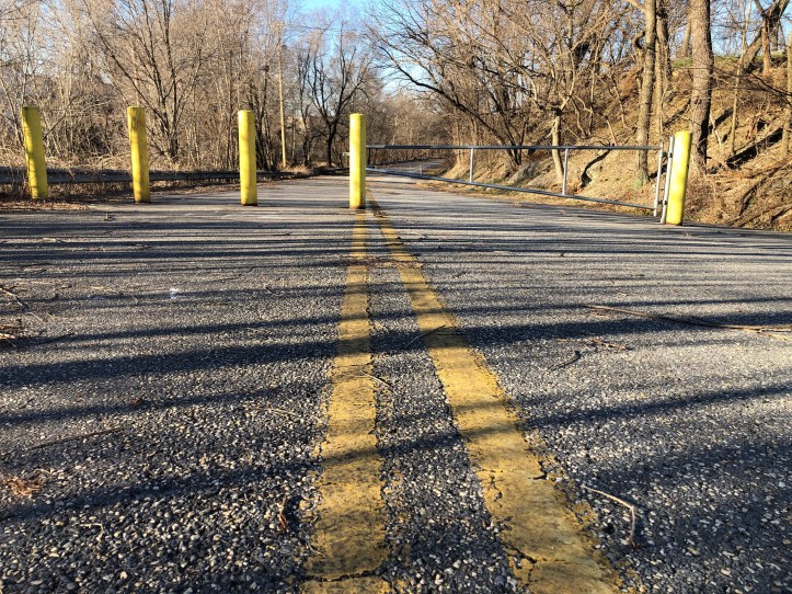 The 2.2-mile loop takes us down an abandoned road. Today, it’s a runners’ highway.