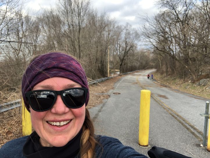 The first lap went by in the blink of an eye thanks to great conversation with my friends Joanne and Alex. We’re back at the shop! I ducked inside for a quick half-cup of coffee and bathroom break.