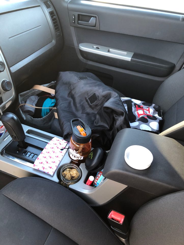 Lap 6: A quick visit to my car where I have a mini-aid station set up with water, chapstick, energy bites (made with peanut butter, honey, oatmeal, chocolate chips, coconut) and my run bag with extra gloves, clothes on standby.