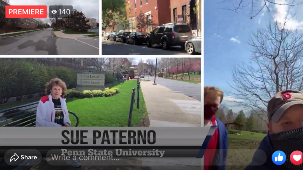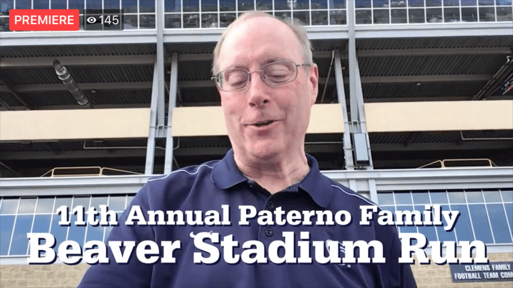 At 11 a.m. this morning, the Beaver Stadium Run launched virtually with a race ceremony on YouTube–how cool! Nearly 2,000 runners and walkers were signed up for the race, raising more than $330,000.