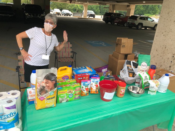 Several Harrisburg Area River Runners organized a 3-mile run with plenty of fun to fill the void left by all of our canceled races. It was held on Tuesday, July 21, from City Island. In order to participate, runners had to bring items desperately needed by our area Humane Society. Here’s what the donation table looked like toward the beginning of the evening (below):